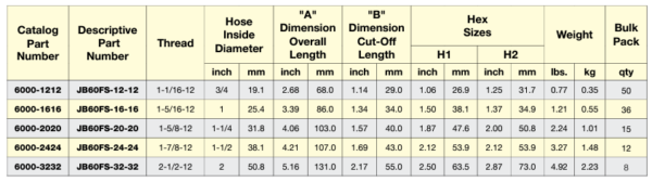Acoplamientos hidráulicos – Serie 60/JB60 para mangueras espiral de 4 y 6 hilos