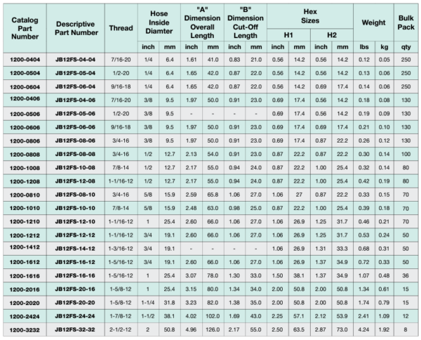 Acoplamientos hidráulicos – Serie 12/JB12 para manguera trenzada de 1 y 2 cables