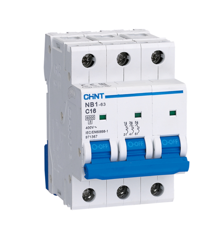 Breaker para riel DIN 3 polos, serie NB1/6KA CHINT