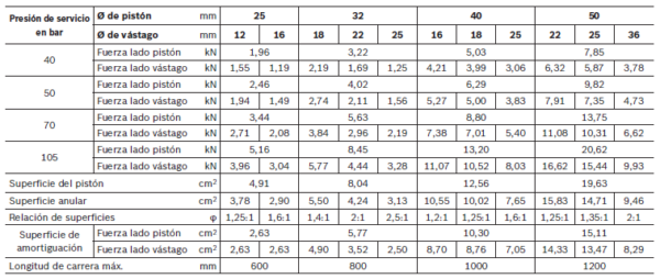 Presión de servicio máxima (dependiendo de Ø de pistón y tipo de sujeción) bar [MPa]: 105 [10.5]