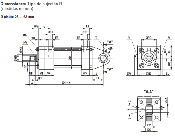 -Ø de pistón (ØAL) 25 … 200 mm