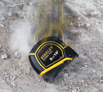La cinta métrica Global Plus, viene con una caja de plástica ABS resistente a impactos y un recubrimiento TPR, cumple con normas de precisión clase CEE II, la cinta viene recubierta de nylon extruido que dura 4 veces más que las que vienen con polímero, tiene un gancho grande para una mejor sujeción cuando se trabaja solo.