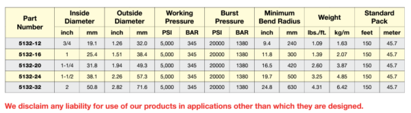 Refuerzo: -4 espirales de acero de alta resistencia para diámetros interiores de 3/4″ y 1″ -6 espirales de acero de alta resistencia para diámetros interiores de 1-1/4″, 1-1/2″ y 2″ |