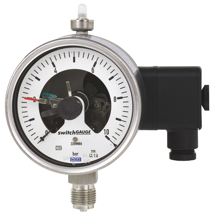 Los contactos eléctricos cierran y abren los circuitos eléctricos en función de la posición de la aguja de los instrumentos de medición. Los contactos eléctricos pueden ajustarse a lo largo de toda la escala (véase DIN 16085); se montan preferiblemente debajo de la esfera, en algunos casos también en la esfera. La aguja puede moverse a lo largo del trayecto de la escala independientemente del ajuste de la aguja (indicador del valor actual).