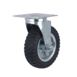 Rueda con banda de caucho termoplástico inyectado sobre rodamientos de precisión y guardahilo integrado que evita la entrada de hilazas y protegen la rueda cuando es sometida a lavados frecuentes.