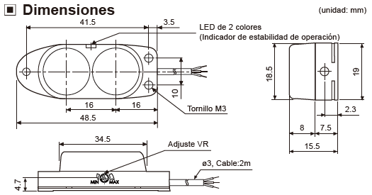 Modo de indicación: 2 LEDs para estado de la salida e indicador de estabilidad