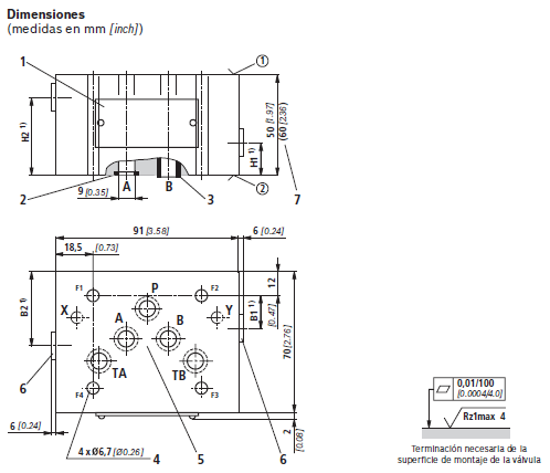 -Posición de las conexiones según ISO 4401-05-04-0-05,