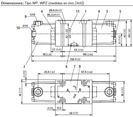– Posición de las conexiones según ISO 4401-03-02-0-05 y